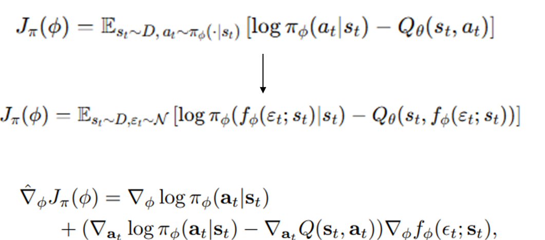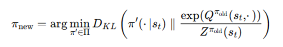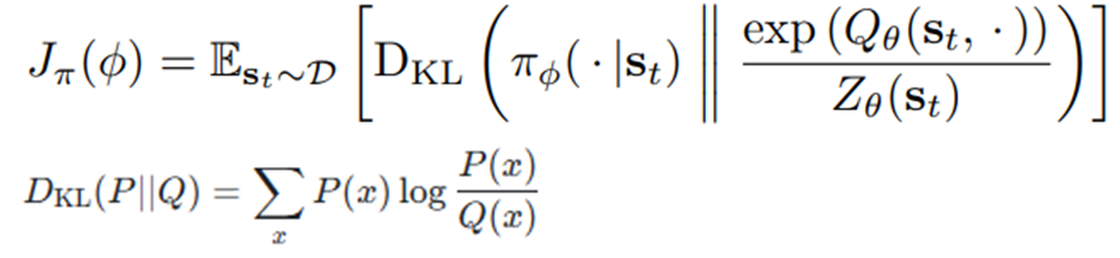 SAC 이전에는 높은 Q값만이 선택되는 정책을 펼쳤다면, 정책에 대해 Q벨류의 Softmax 분포를 기준으로 학습한다.(KL Divergence)