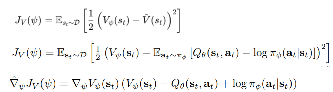 V는 Q로부터 학습한다. 이때 V에 엔트로피 항을 추가하는 형식으로 엔트로피가 추가된다.