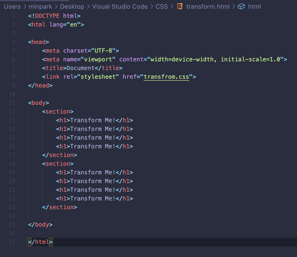 여기에 transform 효과를 주면 font-family: Courier New; font-weight: lighter; 이런 모습이 된다. 그밖에 자주 쓰이는 transform은,