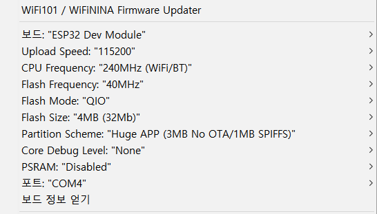 보드: ESP32 Dev Module