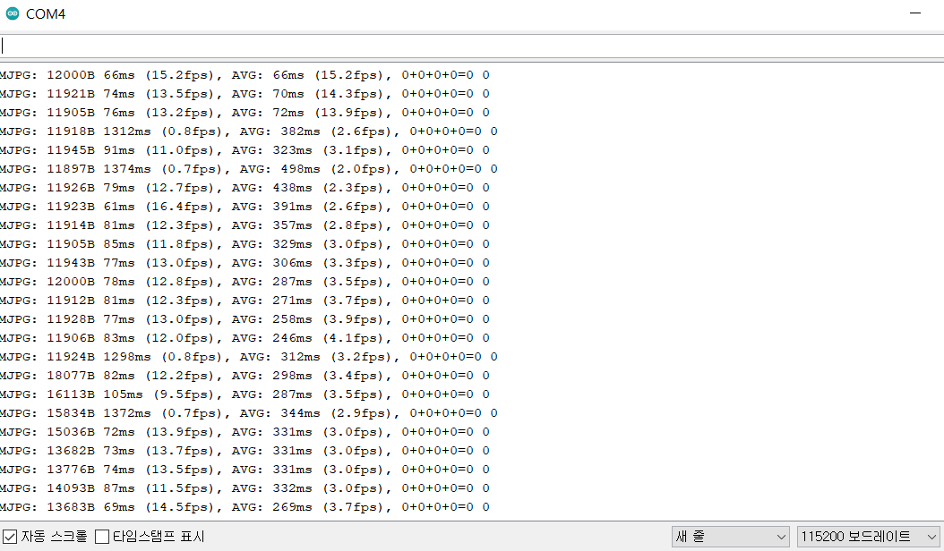 시리얼 모니터의 주파수는 115200으로 동일하게 설정