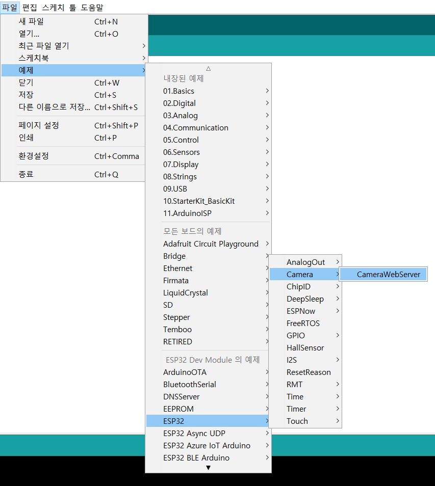 이걸 설치하면 예제에 ESP가 뜬다.