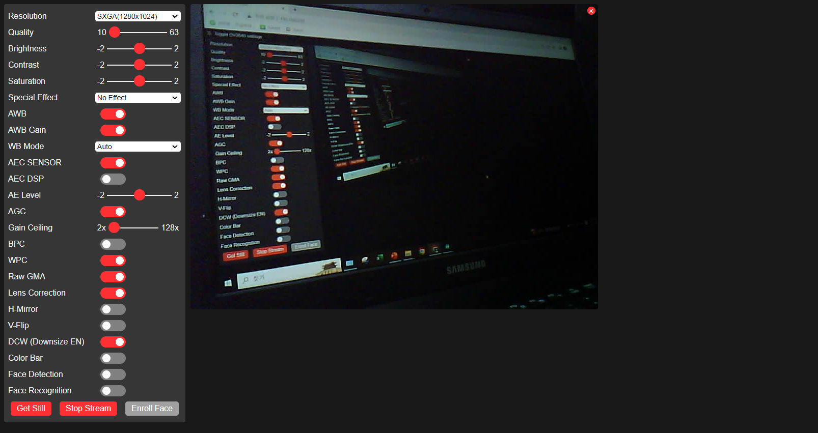 여기서 Start Stream을 눌러주면 카메라가 작동하는 것을 확인할 수 있다