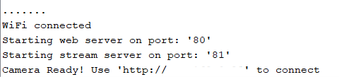 Serial.print("Camera Ready! Use 'http://");
