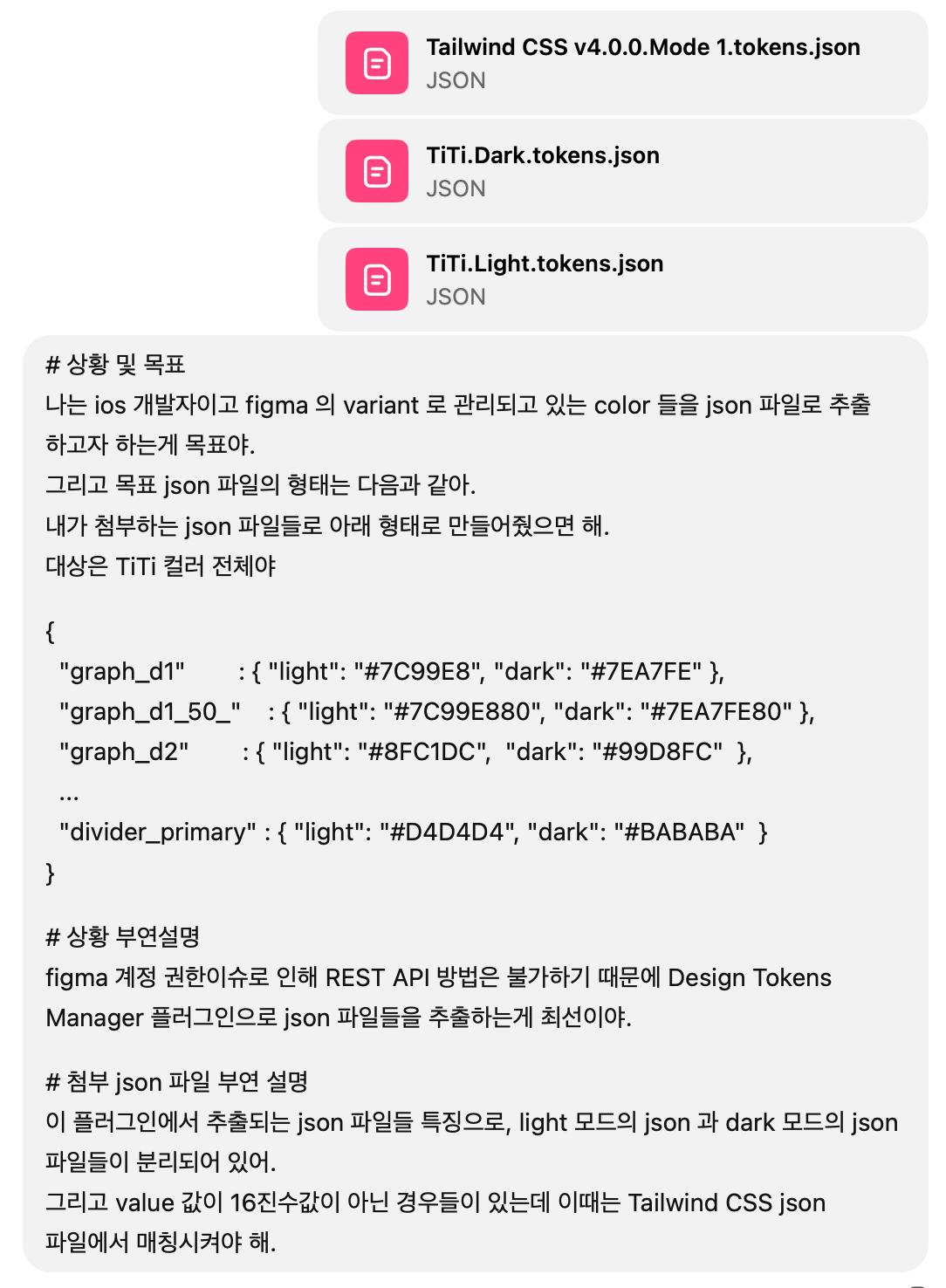 gpt 를 토대로 이 json 파일들을 업로드해서 필요한 예시를 토대로 Colors enum 문 생성까지는 가능한 것으로 확인