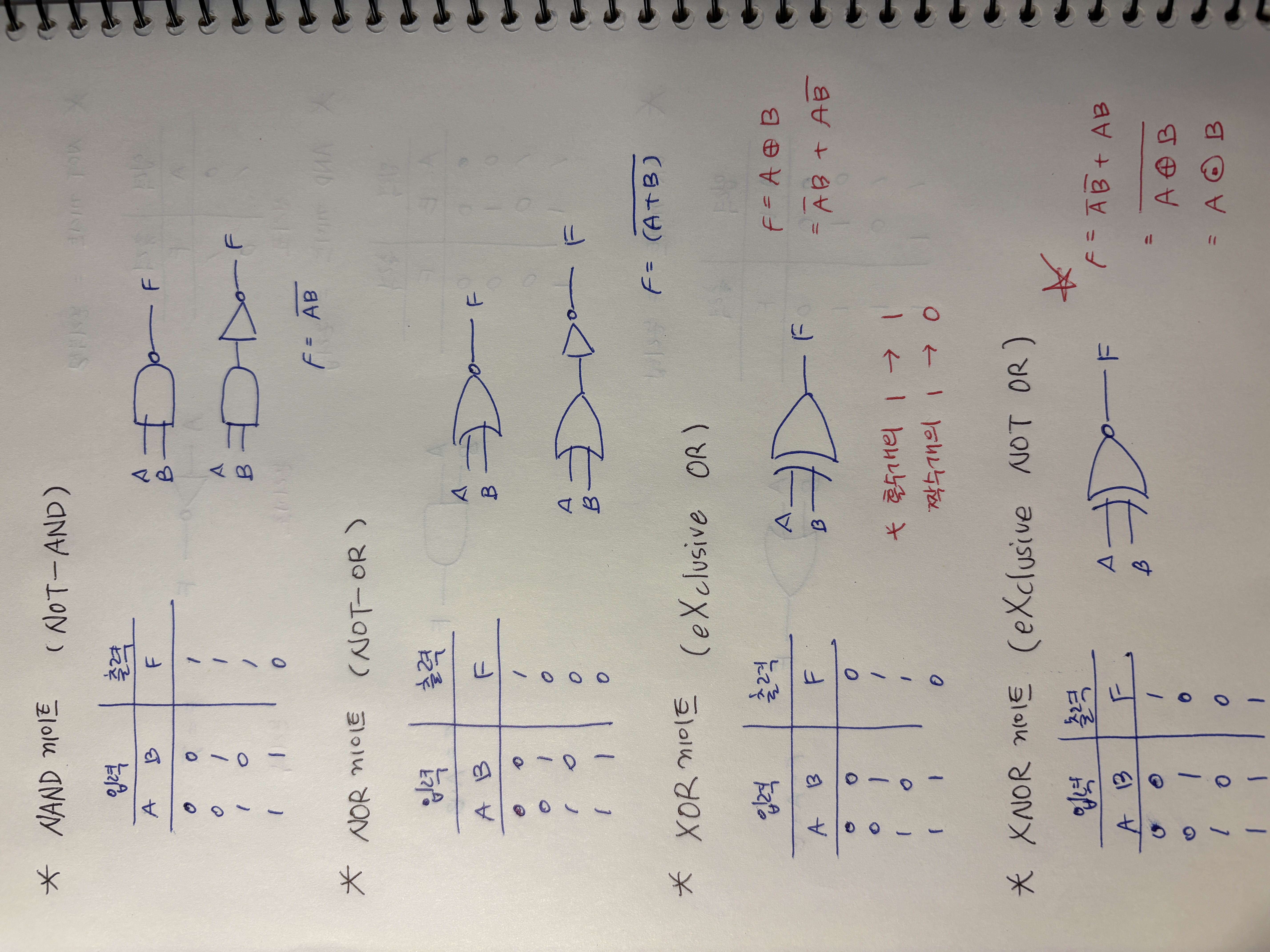 이들을 조합해서 만든 게이트 : NAND, NOR, XOR, XNOR