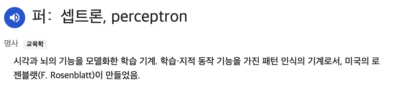 인공신경망의 기본 구성 요소 중 하나로, 입력 신호들을 받아 가중치를 곱한 후, 이를 합산하여 특정 임계값을 초과하면 활성화되어 출력하는 알고리즘