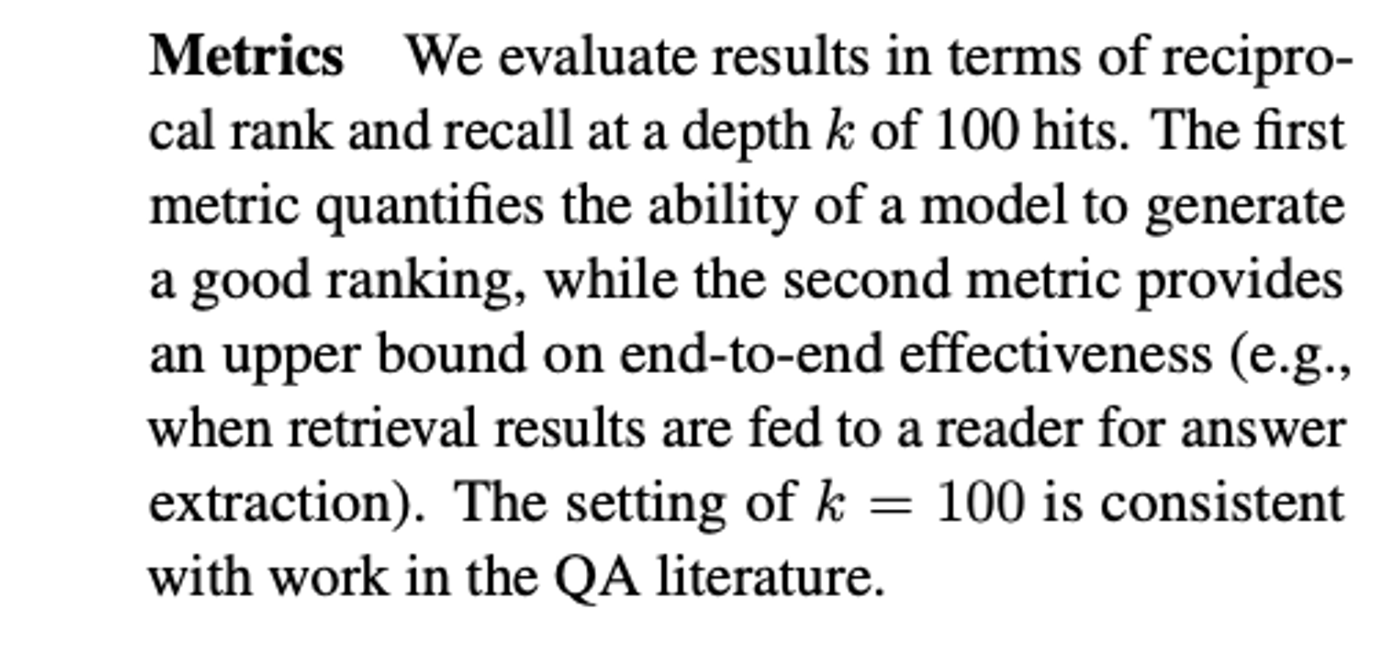 찾고자 하는 retrieval gt로 bm25가 retrieve한 녀석의 순위를 체크후 그 순위를 역수로 취한것이 → reciprocal rank