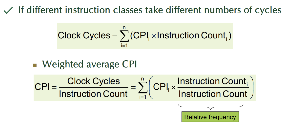 - 서로 다른 명령어들이 다른 CPI를 가질 경우, 명령어 구성에 따라 평균 CPI가 영향받음