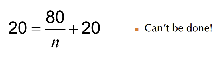 ex. 곱셈 연산이 100초 중 80초를 차지하는 경우, 전체 성능을 5배 향상시키기 위해서는 곱셈 성능을 얼마나 개선해야할까?