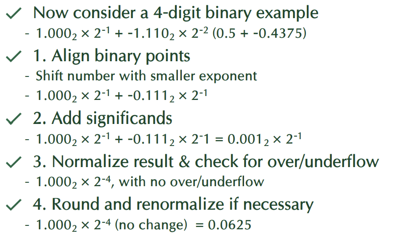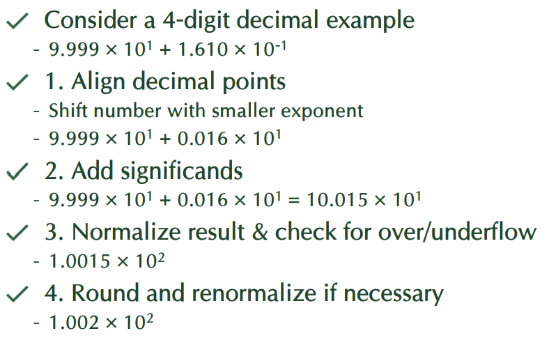 - 반올림 및 필요시 재정규화 -> 4개의 bit로 조정: x.xxx × 2ⁿ