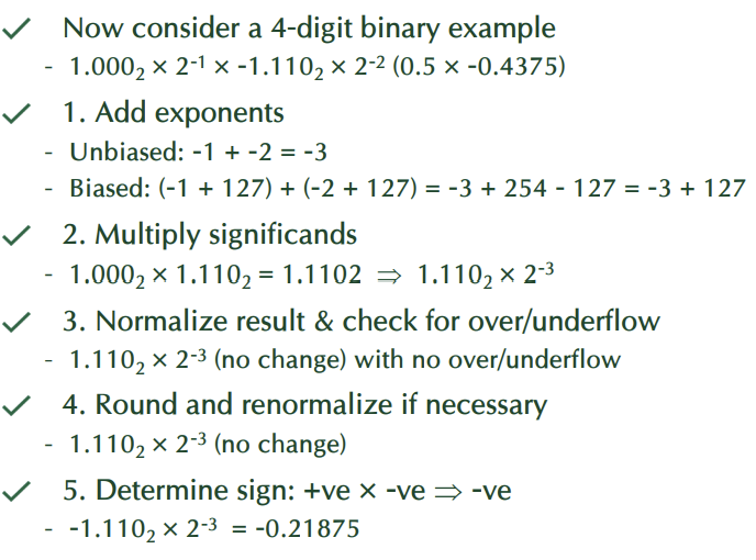 - ex. Biased: (-1+127) + (-2+127) = -3 +254 -127 = -3 +127