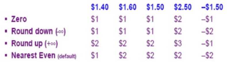 - default mode: Round to Nearest Even (가장 가까운 짝수로 반올림)