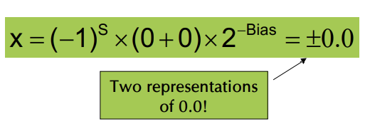 비정규화 수: 지수(E)가 모두 0일때 (Exponent = 000...0 Þ hidden bit is 0)