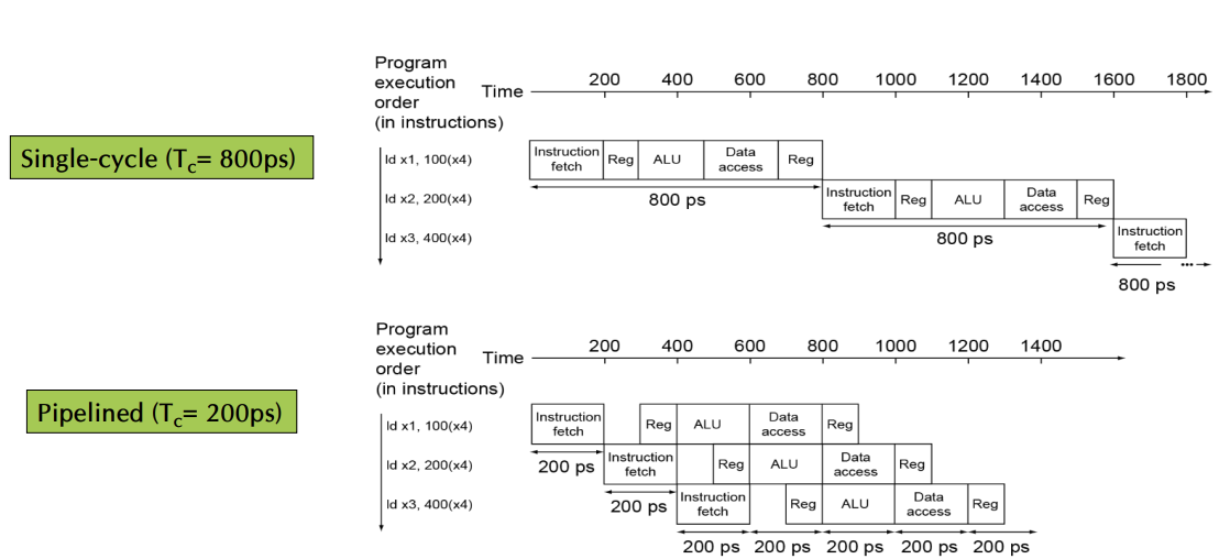 단일 사이클: 각 명령어가 하나의 클록 사이클 내에서 완료되야함