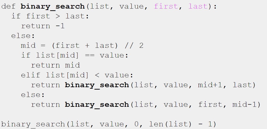 => 각 호출(call)은 mid의 계산/value 비교/output 반환에서 각각 O(1)이 소요됨
