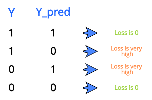 - y를 잘못 예측한 경우(즉, 실제 y가 1인데 0으로 예측했을 시) loss가 infinite로 penalty가 정말 크다