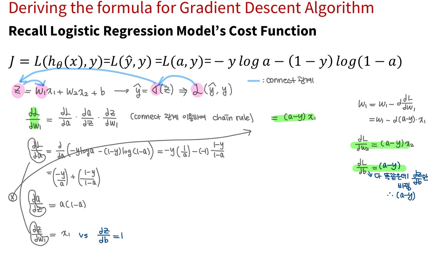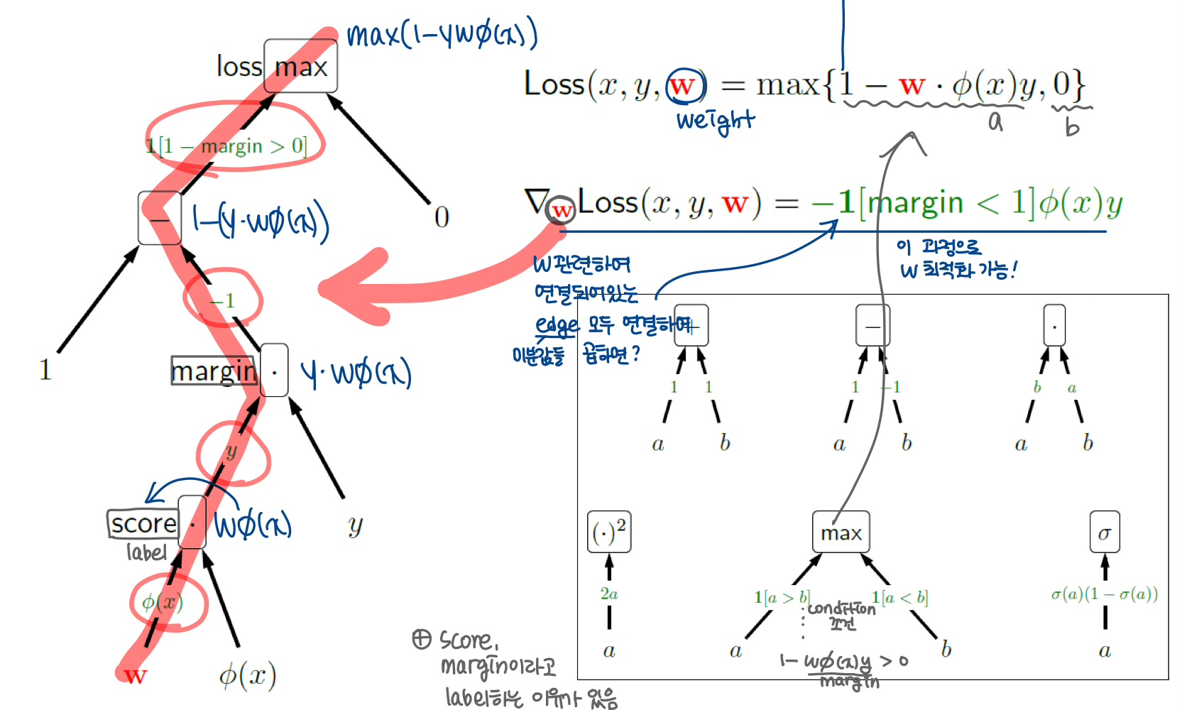 - 파라미터(w)(==input중 최적화해야하는 값)와 연관된 파라미터들의 편미분값을 모두 곱하면? -> loss를 최소화하도록 w최적화 가능!