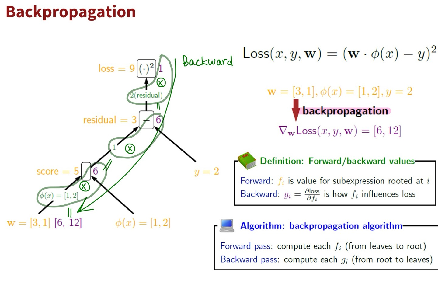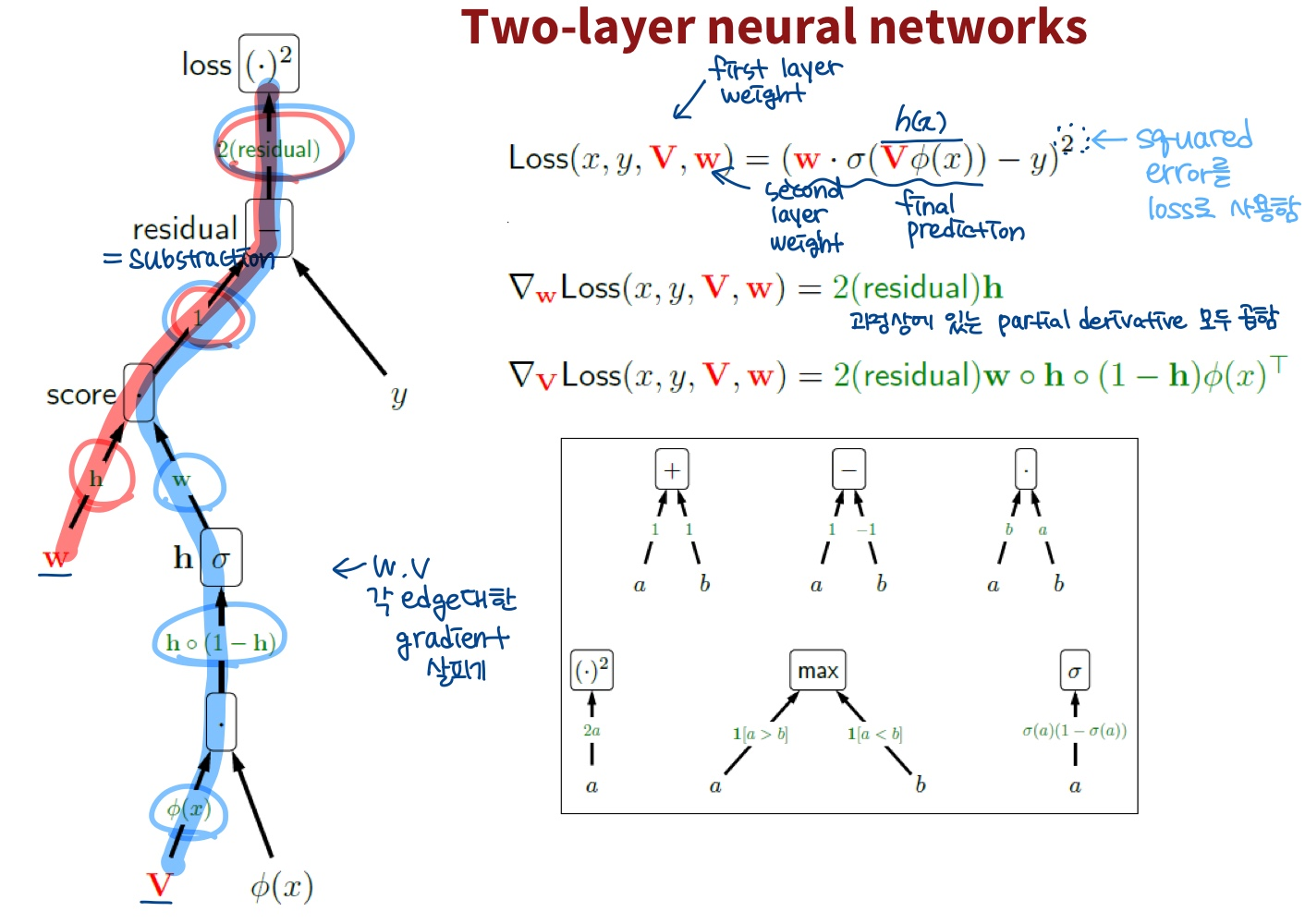 - Forward pass: 루트에서 시작하여 순차적으로 계산 (즉, 입력에서 시작해 모델의 출력까지 구함)
