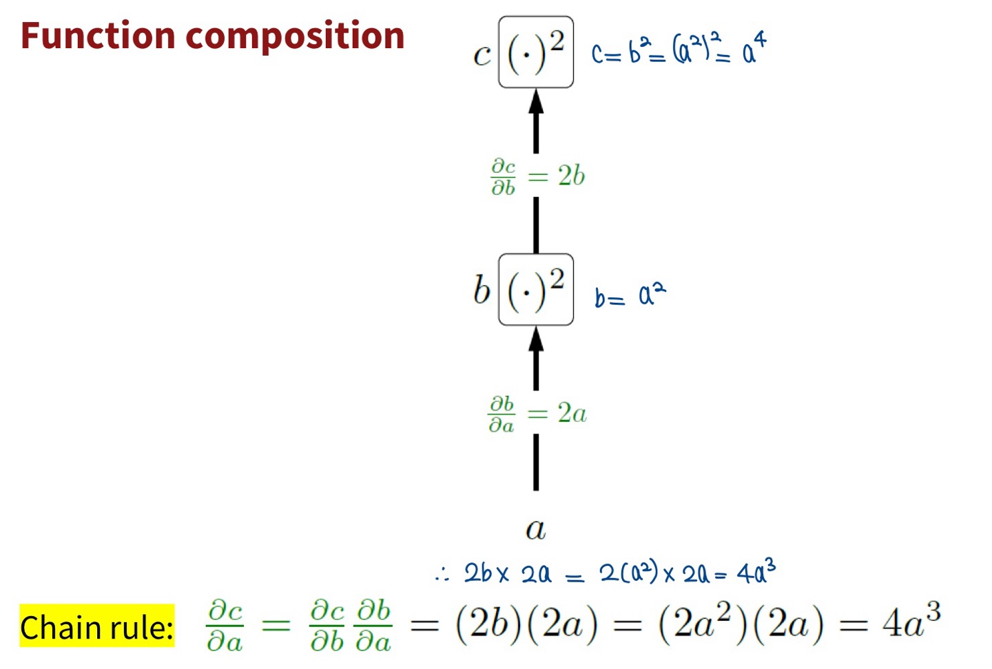 - 즉, input이 변화하면 그 input의 변화의 편미분 곱만큼의 변화가 output에도 생김