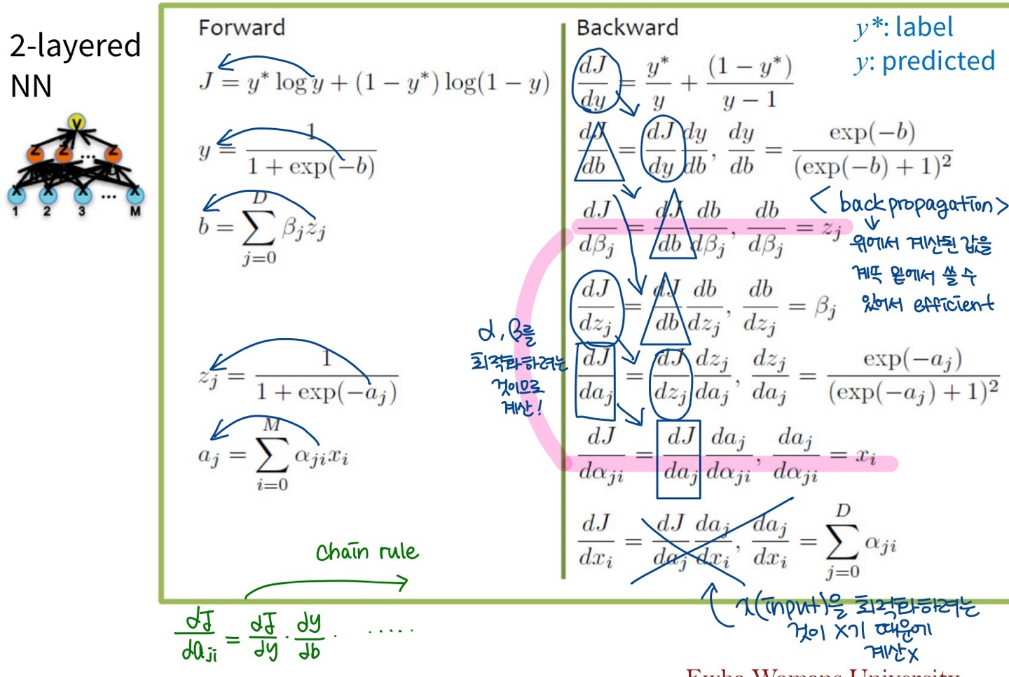 - Chain Rule: 합성함수의 미분 == 합성함수를 구성하는 각 함수의 미분(partial derivative==편미분)의 곱