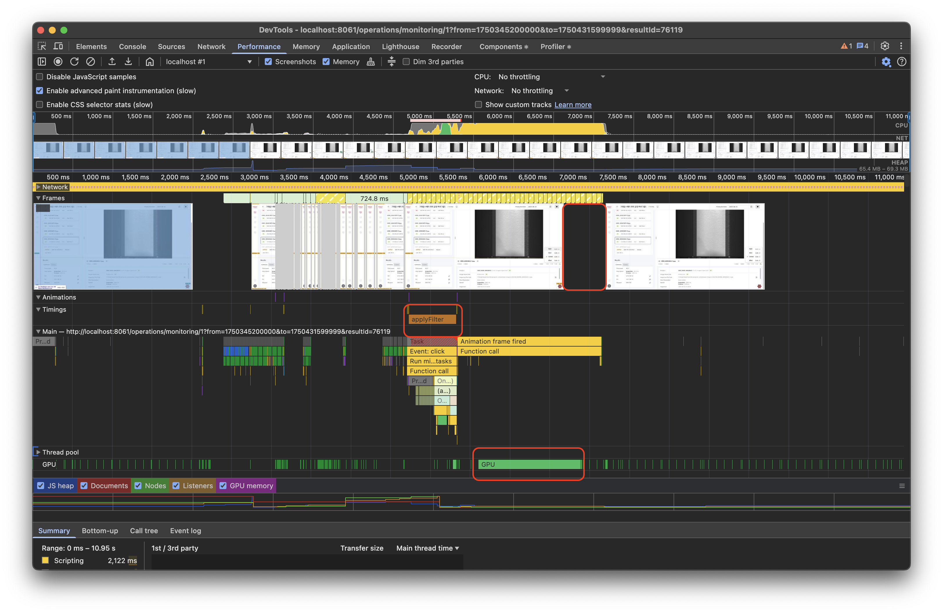 이후, 이 부분을 브라우저 퍼포먼스에서 찍어봤다.