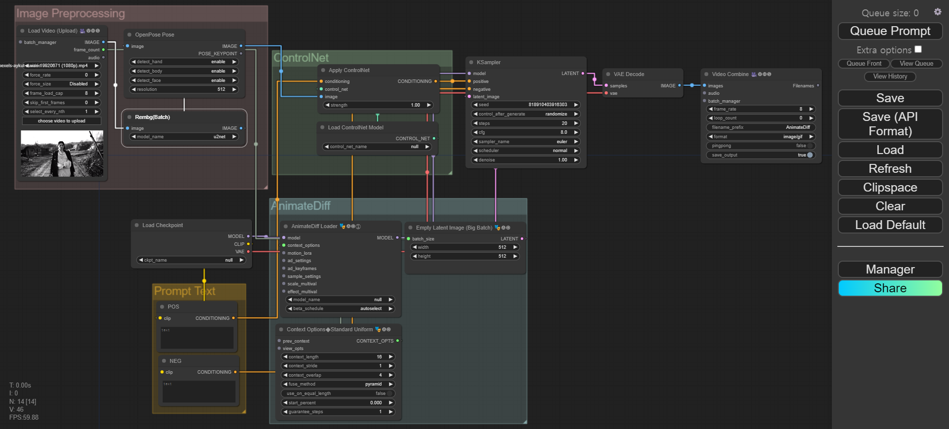 "이미지 추출 - 이미지 전처리(depth, openpose 등) - 컨트롤넷 적용 - gif 이미지 생성"