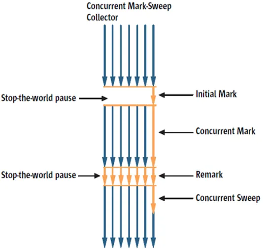 CMS GC에서 CMS는 Concurrent-Mark-Sweep의 줄임말로 Stop The World 시간을 최소화하기 위해 고안되었다. 대부분의 가비지 수집 작업을 애플리케이션 스레드와 동시에 수행하여, Stop The World 시간을 최소화하고 있다. 하지만 메모리와 CPU를 많이 사용하고, Mark And Sweep 과정 이후 메모리 파편화를 해결하는 Compaction이 기본적으로 제공되지 않는다는 단점이 있다. 이 때문에 시스템이 장기적으로 운영되다가 조각난 메모리들이 많아 Compaction 단계를 수동으로 수행하면 오히려 Stop The World 시간이 길어지는 것을 알 수 있다.