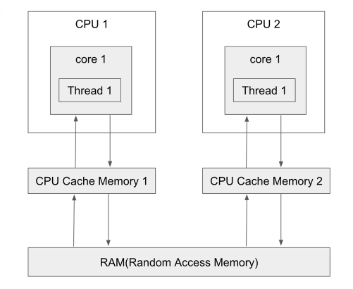 동시성 프로그래밍에서는 CPU와 RAM의 중간에 위치하는 CPU Cache Memory와 병렬성이라는 특징때문에 다수의 스레드가 공유 자원에 접근할 때 두 가지 문제가 발생할 수 있다.