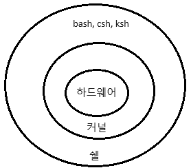 ls나 pwd, cp 같은 명령을 받으면 쉘이 커널로 명령으를 전달하여 하드웨어를 컨트롤한다.