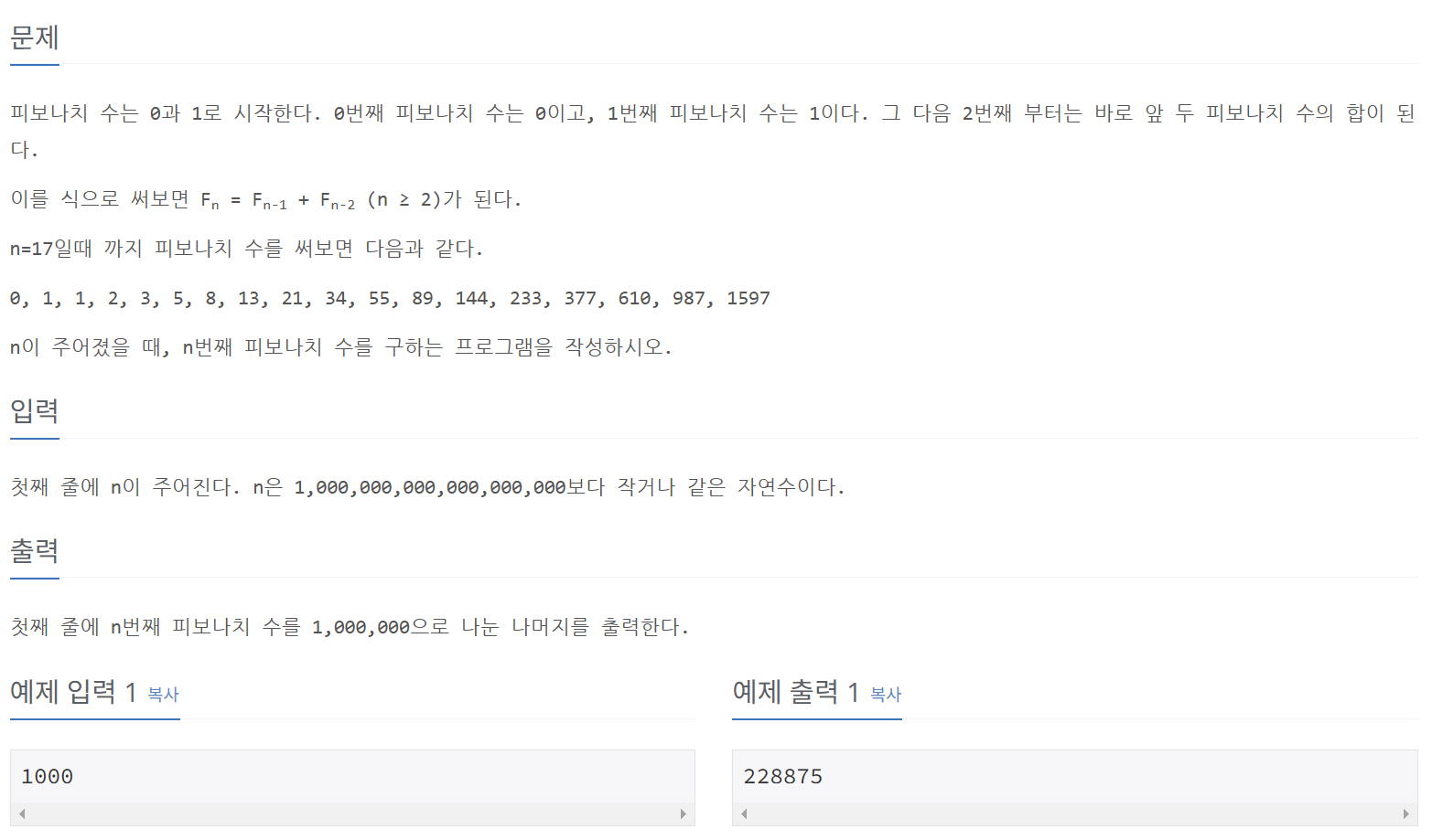 - 요약 : 피사노 주기는 피보나치 수열 나머지의 반복 주기를 의미하며, 이는