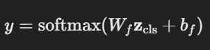 - 일반적으로 MLP Head (Fully Connected Layer) 를 거쳐 Softmax를 적용하여 최종 class를 예측