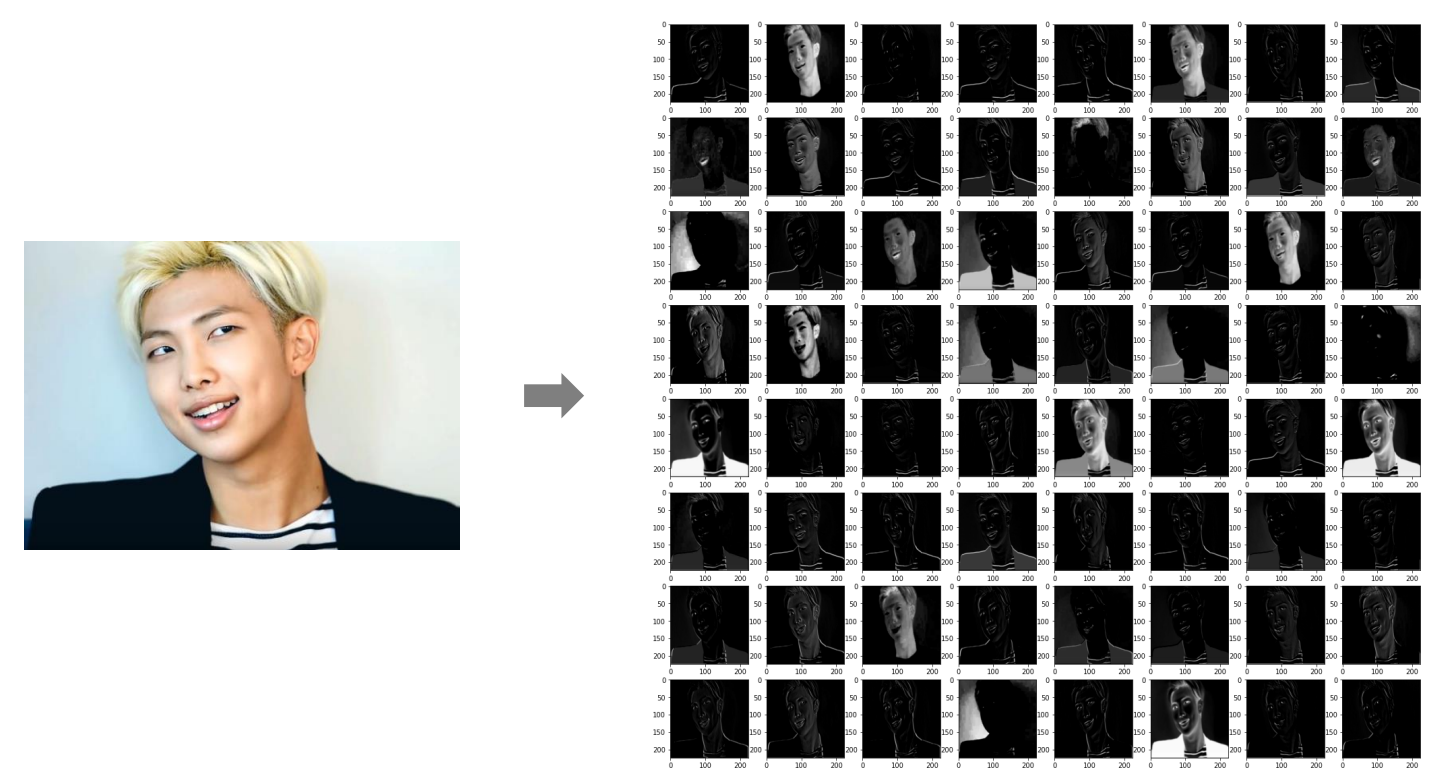 - 계산을 통해 이미지의 특성이 담긴 새로운 배열 생성 (feature map)