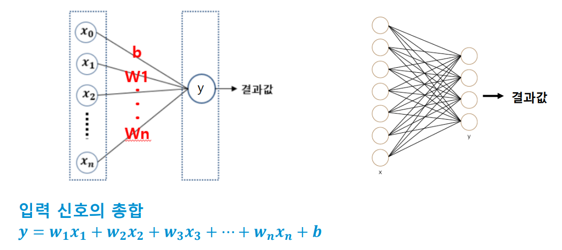 - 입력 값과 출력 값이 100% 연결 된 상태 → 완전 연결 계층(fc, fully connected layer)