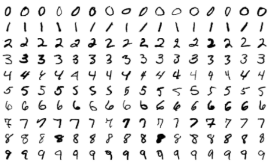 1) 손으로 쓰여진 0부터 9까지의 숫자 이미지들로 구성