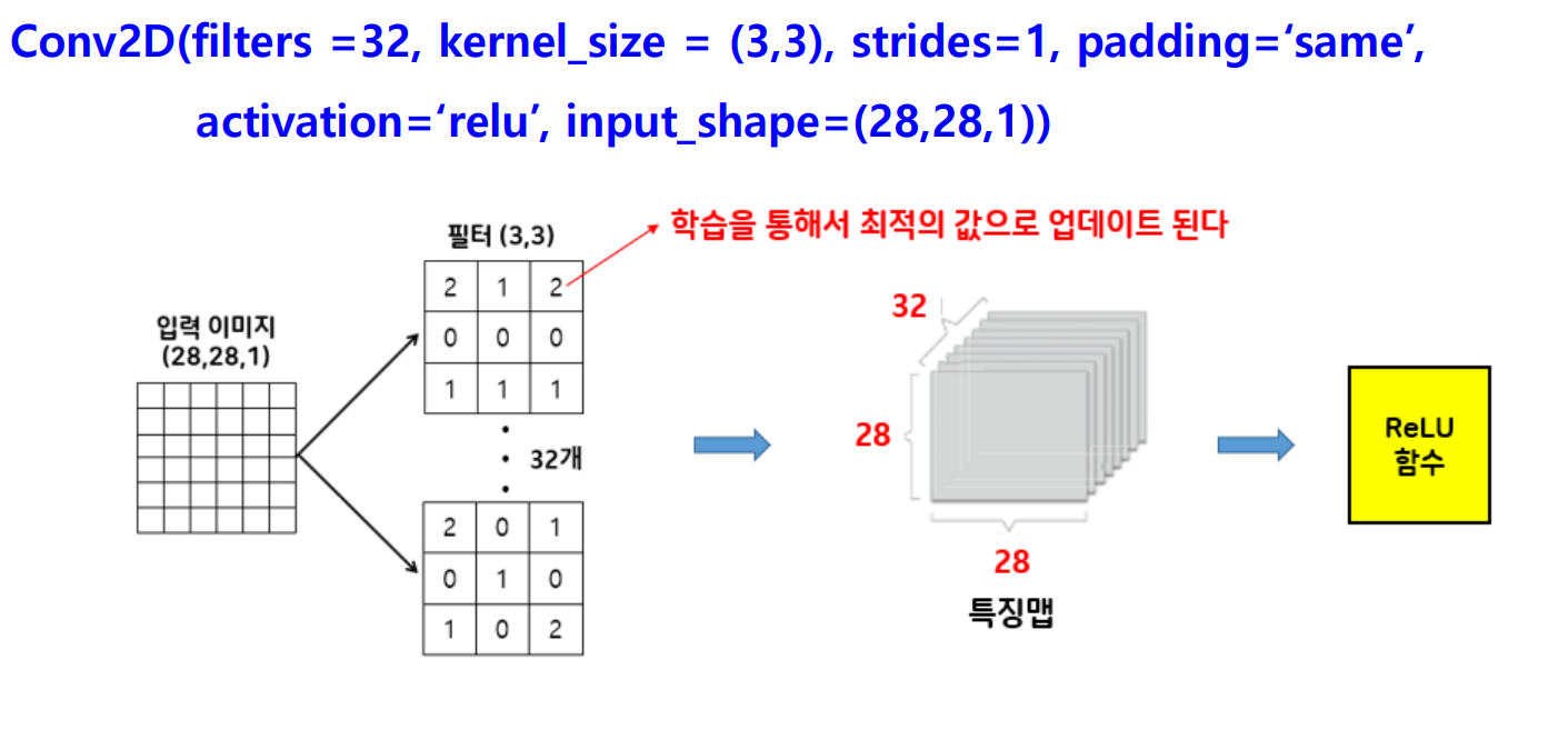 tf.keras.layers.Conv2D(하이퍼파라미터 설정)
