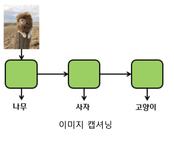 - 단일 입력을 받아서, 여러 개의 출력 시퀀스를 생성하는 형태
