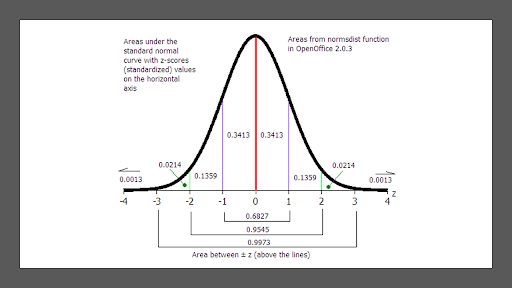 - 100개의 데이터에서 무작위로 뽑았을때 -2~2사이의 값일 확률 0.9545임