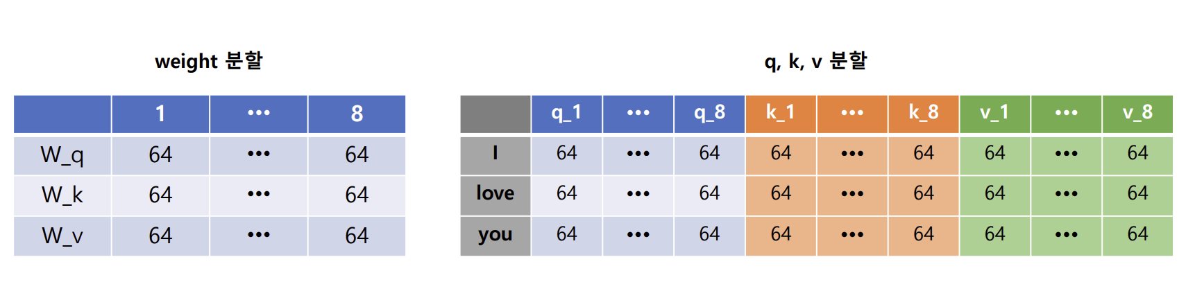 - 각 Q,K,V에 맞는 3개의 가중치를 담고 있는 데이터(512, 512*3)를 생성하고 추출하여 사용함