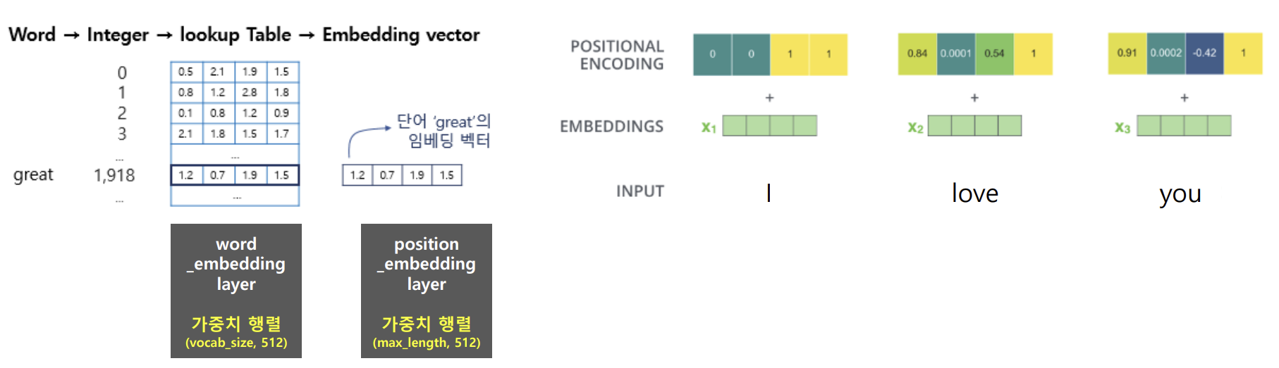 - 단어의 임베딩 벡터 > position_embedding layer 통과