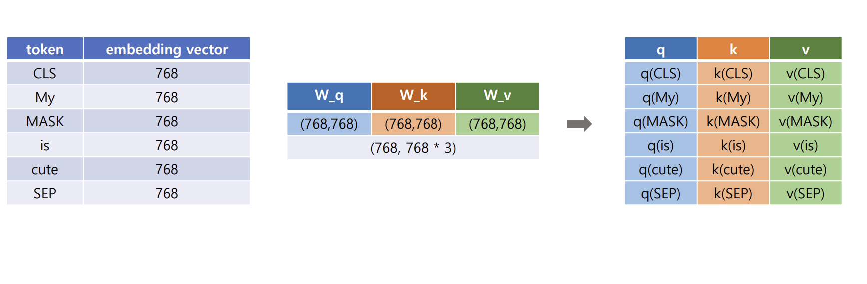 - q, k, v 벡터 생성