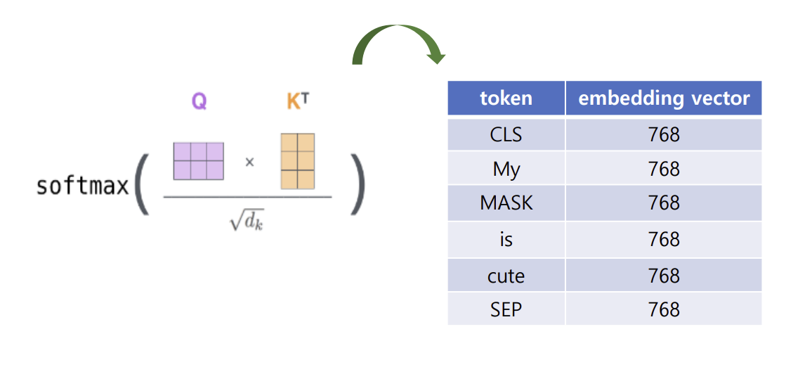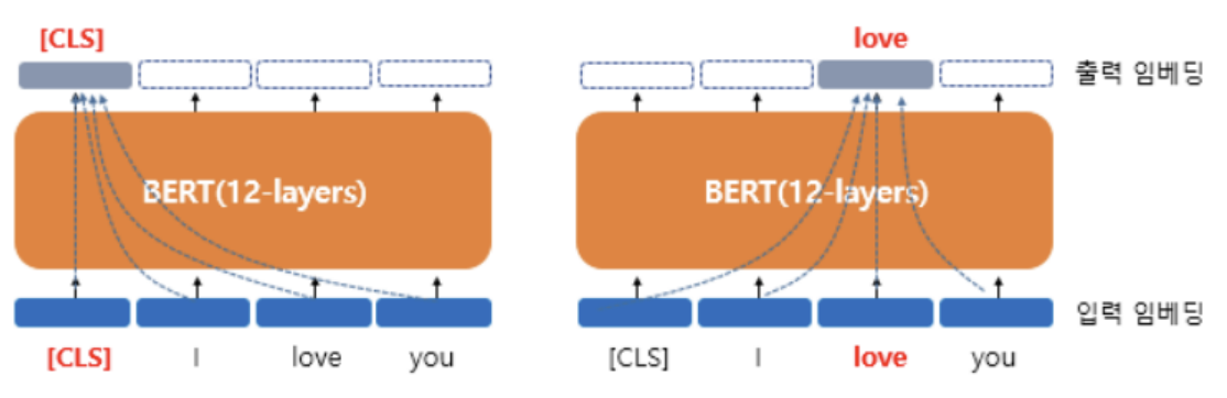 - 문장을 구성하는 각 단어들은 문장 내 모든 단어들을 참고한 문맥을 가진 임베딩 벡터가 됨