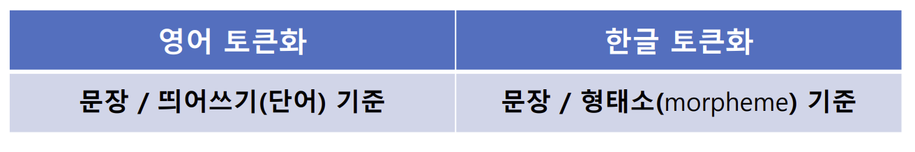 - 형태소 토큰화 : 형태소 단위로 분할
