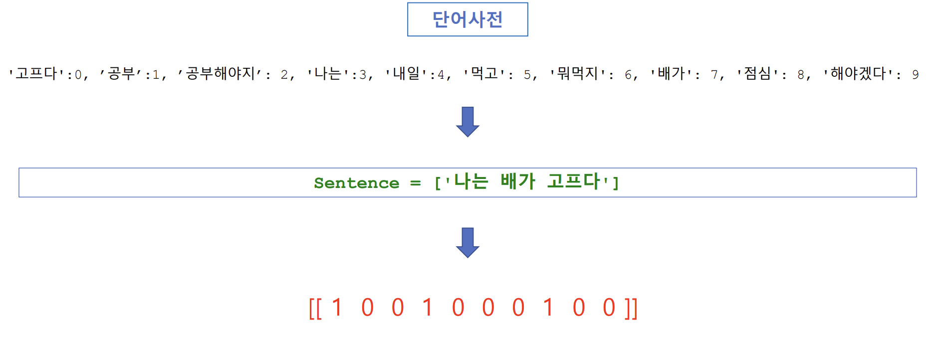 ② 임베딩 할 문장(sentence) : 단어 사전에 있는 각 단어들의 출현 빈도수로 표현