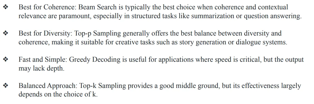 - Greedy decoding은 굉장히 단순하고 빠르지만, 항상 optimal한 output이 나오지는 않음