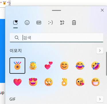 아이콘은 . + 윈도우 탭 누르면 선택할 수 있음