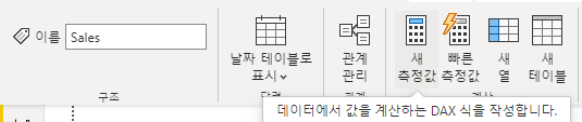 로드한 테이블을 클릭하여 새 측정값을 생성