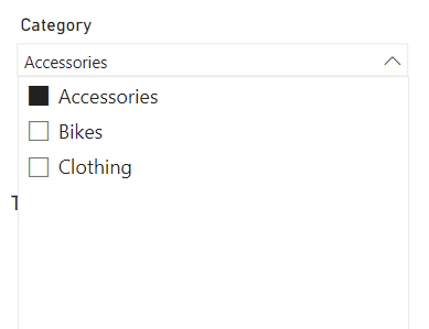 슬라이서를 사용하면 원하는 카테고리의 값만 확인할 수 있음 (목록/드롭다운 선택 가능)
