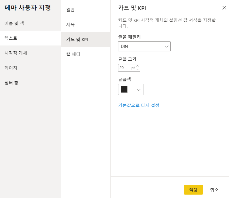 색상, 텍스트 등을 한번에 변경하기 위해 보기>테마>현재 테마 사용자 지정 클릭