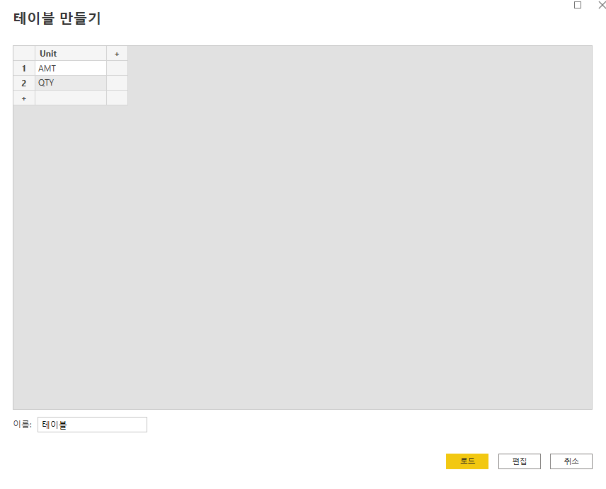 데이터입력>테이블만들기 (간단한 테이블을 임시적으로 만들 때 사용함)